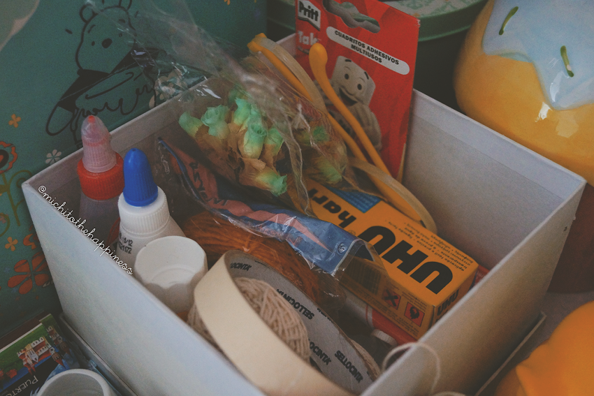 A falta de lugares, he usado muchas cajitas para guardar diferentes materiales y así tener todo más organizado y ordenado.
